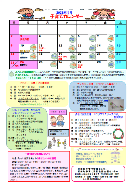 児童館・子育て支援センター お問い合わせTEL: 0224-83-3901