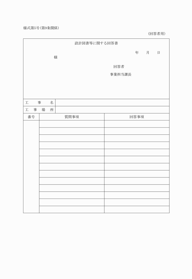 3 申請者が設計図書等において質問する場合は、質問書(様式第4号)により回答を求めることができる。