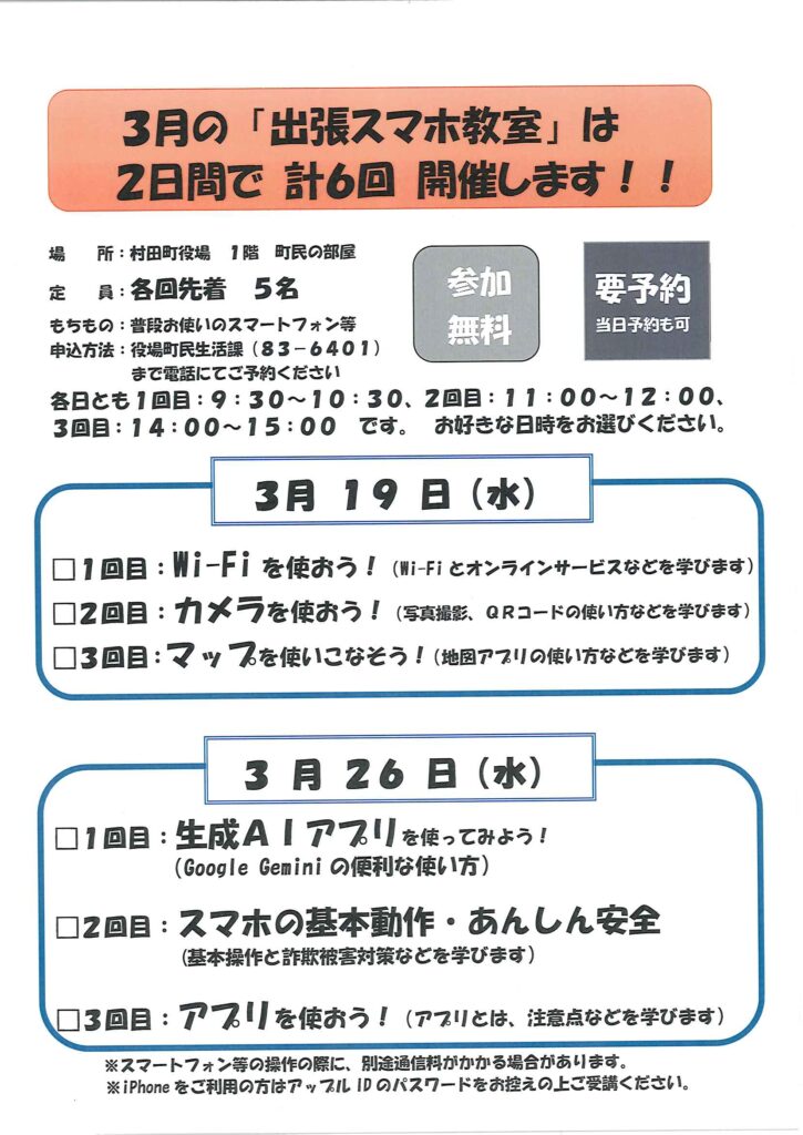 【スマホなんでも相談会&出張スマホ教室を開催します!】