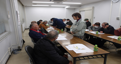 令和8年2月25日(水)午後3時30分(認定農業者連絡協議会総会終了後)、地域計画内の農業者12名と、10年後の目指すべき農地利用の見直しを検討しました。